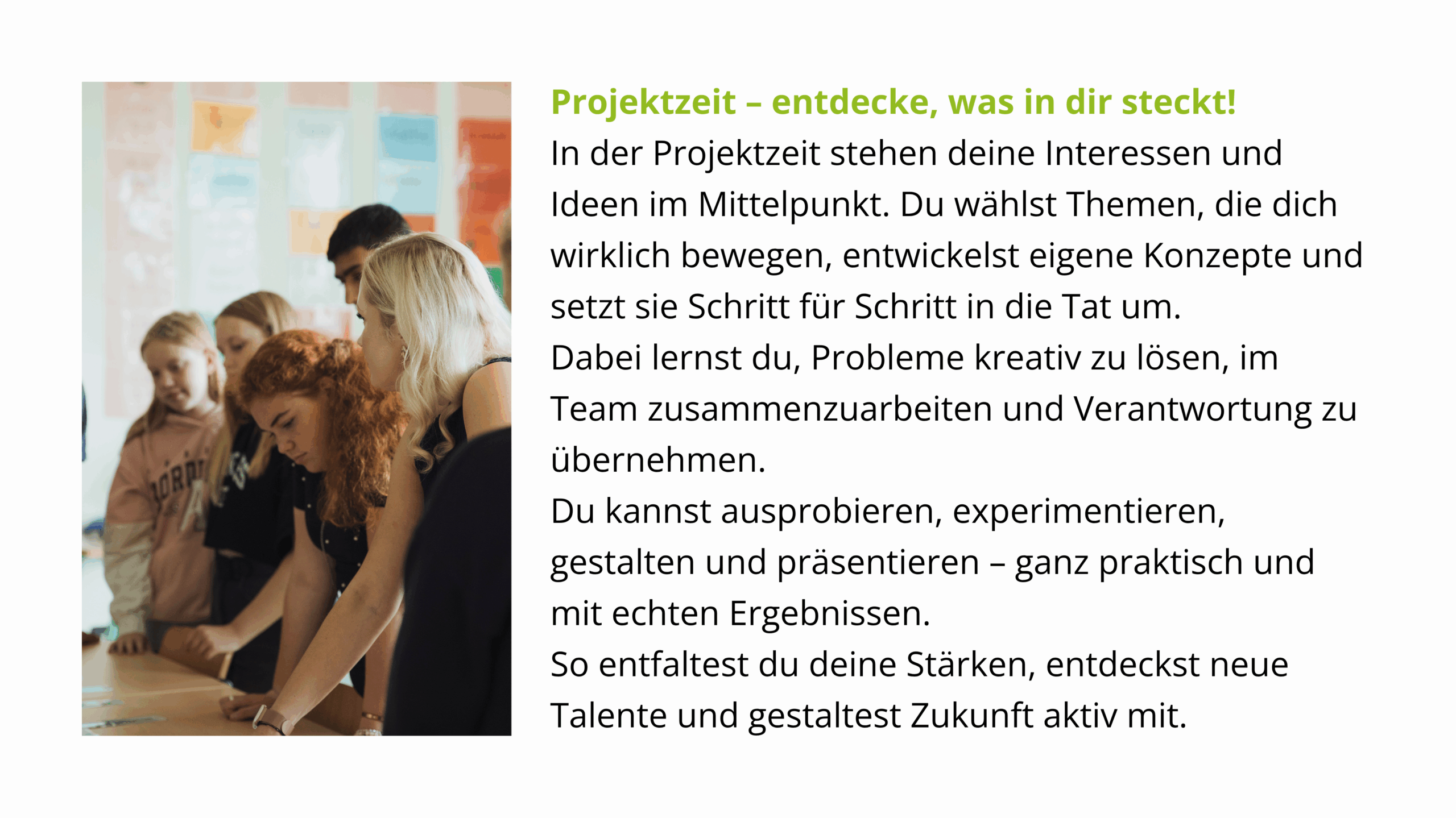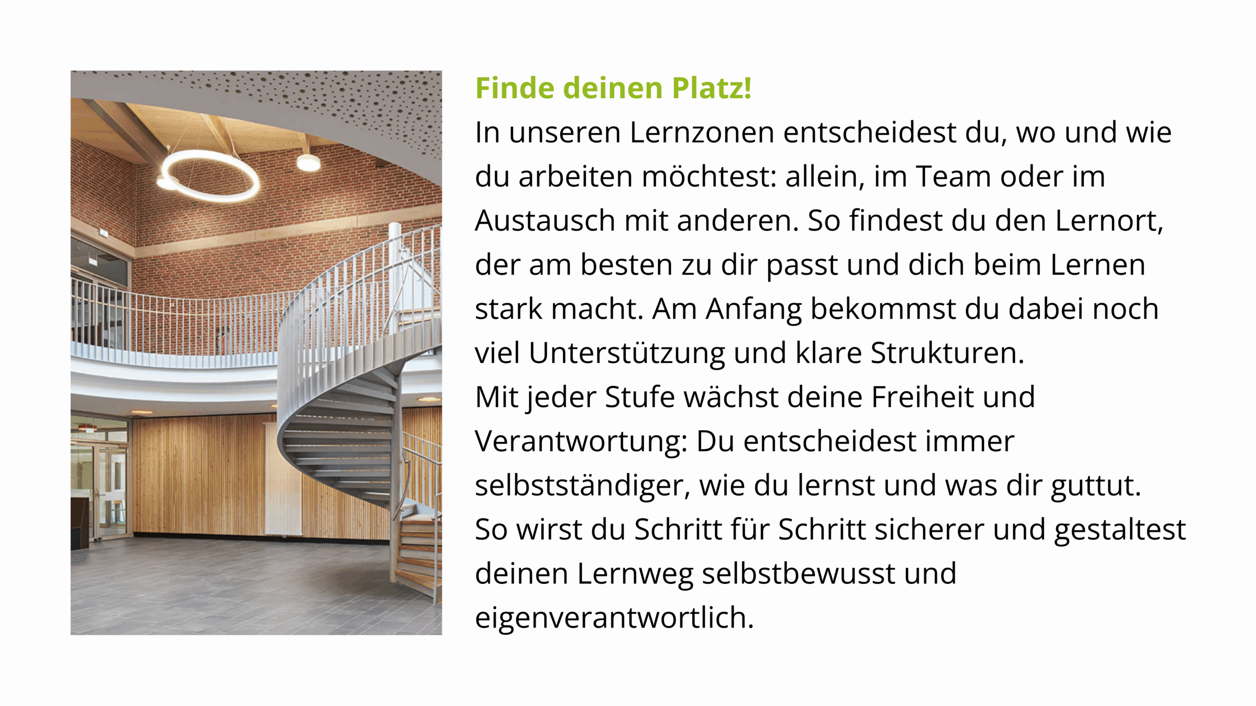 Die SchülerInnen sollen am Ende ihrer Schulzeit eine individuelle angemessene Berufswegentscheidung und -planung entwickelt haben.