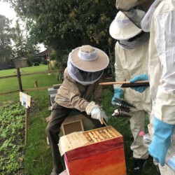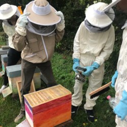 Seit dem Schuljahr 2018/19 summt und brummt es an der Eider-Nordsee-Schule. Im Rahmen des WPU II "Sommerbienen" mit der Lehrkraft Peter Greve ist ein Bienenvolk auf dem großen und weitläufigen Schulgelände heimisch geworden und produziert fleißig Honig.