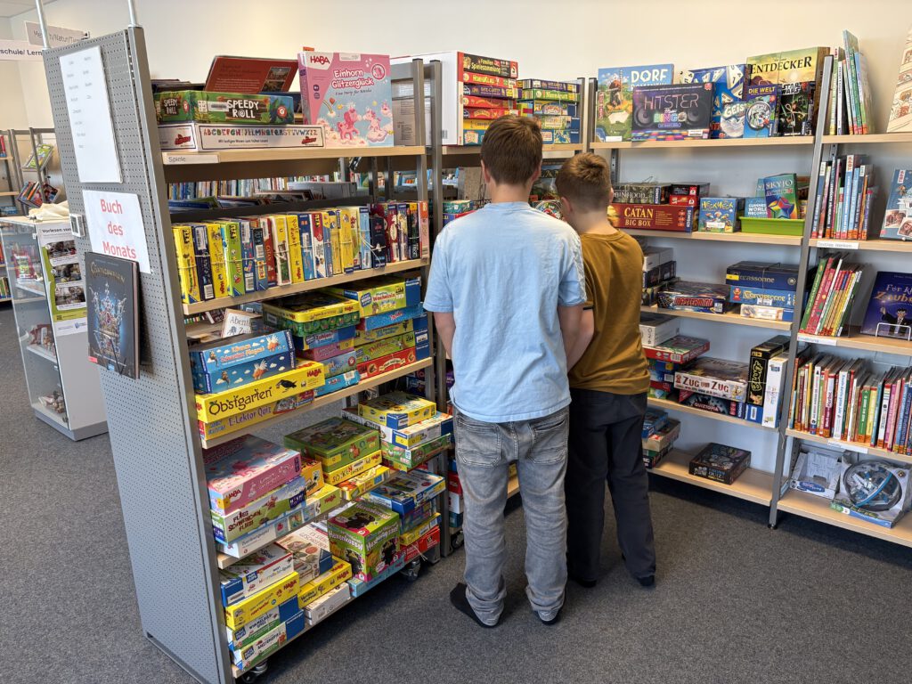Im Deutschunterricht der 6b dreht sich derzeit alles um das spannende Jugendbuch „Wolf“. Doch gelesen wird nicht nur im Klassenraum: Regelmäßig zieht die Lerngruppe in die Bücherei unseres Schulgebäudes in Wesselburen um – ein besonderer Ort, den wir als Schule nutzen dürfen.