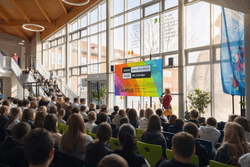 Im Rahmen der Aktionswoche „Schule ohne Rassismus – Schule mit Courage“ versammelten sich am 20. März 2026 Schülerinnen und Schüler, Lehrkräfte sowie zahlreiche Gäste am Hebbel-Campus der Eider-Nordsee-Schule in Wesselburen. Gemeinsam mit der Watt’n Meer School wurde an diesem Tag ein deutliches Zeichen für Vielfalt, Respekt und ein demokratisches Miteinander gesetzt. Die feierliche Aufnahme in das Netzwerk „Schule ohne Rassismus – Schule mit Courage“ bildete dabei den inhaltlichen und emotionalen Mittelpunkt der Veranstaltung.