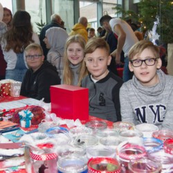 Die Besucher staunten nicht schlecht, was dieses Jahr die Klassen so alles angefertigt hatten. So ging manch einer mit gut gefüllten Taschen nach Hause. Bereits während der Vorhabenwoche nach den Sommerferien wurde in den Klassen für den Weihnachtsmarkt eifrig gebastelt und gewerkelt. So entstanden eine bunte Vielzahl handgefertigter Produkte wie z. B. Kränze, Gestecke, Holzarbeiten, Stoff- und Strohtiere, Bienenwachskerzen, Seifen, Vogelhäuser, Strandgut-Deko oder Lichtelemente in verschiedenen Varianten. Die Abschlussklassen sorgten an dem Nachmittag für das leibliche Wohl. Die Besucher hatten eine breite Auswahl selbst gebackener Torten und Kuchen und konnten ihn zusammen mit einer Tasse Kaffee in der Weihnachtsmarkt-Cafeteria genießen. Im Hintergrund hörte man von der Empore die Bläserklasse Weihnachtslieder musizieren. Auch der Weihnachtsmann war für die kleinen Gäste unterwegs und verteilte kleine Präsente. Für alle, die es lieber herzhaft mochten, standen der Grill und heiße Erbsensuppe sowie Apfelpunsch und Kaltgetränke im neu eröffneten Schulhof (Innenhof) bereit. Aber auch „süße Snacks“ wie z. B. Crépes, Waffeln, Popcorn und gebrannte Mandeln konnten an verschiedenen Klassenständen gekauft werden. Premiere feierte Jim`s Bar und verkaufte auf dem Weihnachtsmarkt alkoholfreie Cocktails. Und wer sein Glück herausfordern mochte, war auch in diesem Jahr bei der Tombola und Bingo genau richtig. Sowohl die Tombola und Bingo bestanden aus Spenden von Betrieben aus Wesselburen und Umgebung. Manch einer staunte nicht schlecht, wie viele Preise in diesem Jahr zusammengekommen sind. Der Gewinn aus dem Verkauf der einzelnen Klassenstände geht in die Klassenkasse für z. B. anstehende Ausflüge oder die bevorstehenden Abschlussfeierlichkeiten. Ein Teil des Gewinns wird aber wie jedes Jahr für einen gemeinnützigen Zweck gespendet. Wohin die Spende geht wird noch über die SV abgestimmt, dies steht noch nicht fest. Eine Sache steht aber definitiv schon fest: der Weihnachtsmarkt 2020 in der Eider-Nordsee-Schule. Am Donnerstag vor dem 1.Advent 2020 lädt die Eider-Nordsee-Schule erneut zum Weihnachtsmarkt ein.