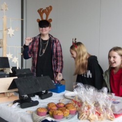 Wie jedes Jahr lud die Eider-Nordsee-Schule am Donnerstag vor dem 1.Advent erneut zum traditionellen Weihnachtsmarkt ein und öffnete dazu ab 14.30 Uhr die Türen. Unter der Leitung der Lehrkraft Frauke Seider und einigen Schülerinnen und Schülern wurde am Vormittag und an den Tagen zuvor die Schule stimmungsvoll dekoriert.