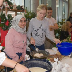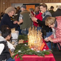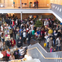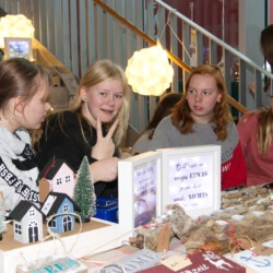 Die Besucher staunten nicht schlecht, was dieses Jahr die Klassen so alles angefertigt hatten. So ging manch einer mit gut gefüllten Taschen nach Hause. Bereits während der Vorhabenwoche nach den Sommerferien wurde in den Klassen für den Weihnachtsmarkt eifrig gebastelt und gewerkelt. So entstanden eine bunte Vielzahl handgefertigter Produkte wie z. B. Kränze, Gestecke, Holzarbeiten, Stoff- und Strohtiere, Bienenwachskerzen, Seifen, Vogelhäuser, Strandgut-Deko oder Lichtelemente in verschiedenen Varianten. Die Abschlussklassen sorgten an dem Nachmittag für das leibliche Wohl. Die Besucher hatten eine breite Auswahl selbst gebackener Torten und Kuchen und konnten ihn zusammen mit einer Tasse Kaffee in der Weihnachtsmarkt-Cafeteria genießen. Im Hintergrund hörte man von der Empore die Bläserklasse Weihnachtslieder musizieren. Auch der Weihnachtsmann war für die kleinen Gäste unterwegs und verteilte kleine Präsente. Für alle, die es lieber herzhaft mochten, standen der Grill und heiße Erbsensuppe sowie Apfelpunsch und Kaltgetränke im neu eröffneten Schulhof (Innenhof) bereit. Aber auch „süße Snacks“ wie z. B. Crépes, Waffeln, Popcorn und gebrannte Mandeln konnten an verschiedenen Klassenständen gekauft werden. Premiere feierte Jim`s Bar und verkaufte auf dem Weihnachtsmarkt alkoholfreie Cocktails. Und wer sein Glück herausfordern mochte, war auch in diesem Jahr bei der Tombola und Bingo genau richtig. Sowohl die Tombola und Bingo bestanden aus Spenden von Betrieben aus Wesselburen und Umgebung. Manch einer staunte nicht schlecht, wie viele Preise in diesem Jahr zusammengekommen sind. Der Gewinn aus dem Verkauf der einzelnen Klassenstände geht in die Klassenkasse für z. B. anstehende Ausflüge oder die bevorstehenden Abschlussfeierlichkeiten. Ein Teil des Gewinns wird aber wie jedes Jahr für einen gemeinnützigen Zweck gespendet. Wohin die Spende geht wird noch über die SV abgestimmt, dies steht noch nicht fest. Eine Sache steht aber definitiv schon fest: der Weihnachtsmarkt 2020 in der Eider-Nordsee-Schule. Am Donnerstag vor dem 1.Advent 2020 lädt die Eider-Nordsee-Schule erneut zum Weihnachtsmarkt ein.